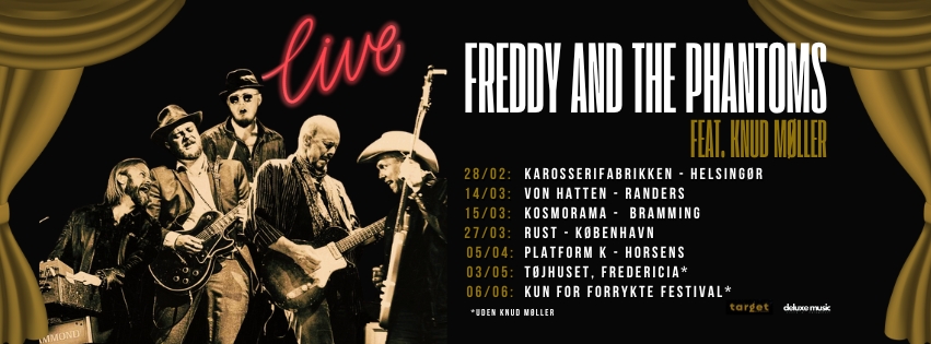 Booking & Events HAMMOND ORGASM FREDDY AND THE PHANTOMS HOLTSØ WITTROCK DREAM CITY BURNIN BEEFEATERS DELUXE MUSIC repræsenterer følgende artister og events: FESTIVALER 2025: KUN FOR FORRYKTE FESTIVAL, d. 6 og 7 Juni 2025 Cannonball Festival 2025 FREDDY AND THE PHANTOMS LIVE SHOWS 2025 BEEFEATERS LIVE SHOWS 2025 Ønsker du at booke en af vores arstister – så skriv gerne til: ← BackYour message has been sent Name(påkrævet) Advarsel Email(påkrævet) Advarsel Comment(påkrævet) Advarsel Advarsel! Send Δ Like Henter...